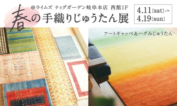 ライムズでは4月11日(土)~4月19日(日)までライムズデザインスクエア岐阜本店西館1Fティグガーデンにて【春の手織りじゅうたん展】を開催します。南ペルシャの手織りじゅうたん「アートギャッベ」や日本の暮らしに合う「ハ...